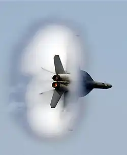 En aerodinámica, la barrera del sonido usualmente se refiere al punto en el cual un objeto (aeronave) se mueve desde una velocidad transónica a supersónica. Fue un término aeronáutico comenzado a usar durante la Segunda Guerra Mundial cuando aeronaves comenzaron a encontrar los efectos de la compresibilidad, un efecto aerodinámico no conocido. Cuando un avión se acerca a la velocidad del sonido, la forma en que el aire fluye alrededor de su superficie cambia y se convierte en un fluido compresible, dando lugar a una resistencia mayor. En 1947, Chuck Yeager se convirtió en la primera persona en cruzar la barrera del sonido a bordo de un Bell X-1. Hacia los años 1950 las aeronaves rutinariamente "rompían" la barrera del sonido.