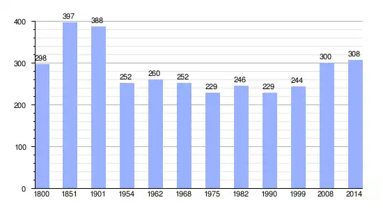 Los datos demográficos contemplados en este gráfico de la comuna de Vercia[4] se han cogido de 1800 a 1999 de la página francesa EHESS/Cassini, y los demás datos de la página del INSEE.[5]
