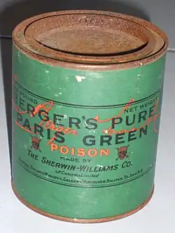 Verde de París es el nombre popular que se dio a un compuesto con propiedades insecticidas descubierto en 1808, el acetoarsenito de cobre, cuya fórmula química corresponde a Cu3As2O3Cu(C2H3O2)2, CuCl. Inicialmente se comercializó en 1814, no como pesticida, sino como un mero pigmento para tintas, debido al color verde intenso que presentaba. Tras atribuirse a este compuesto los envenenamientos de algunas personas que pintaban cuadros fue prohibido su empleo como tinte. Aparecen rastros de este veneno en numerosos cuadros pintados durante el siglo XIX.