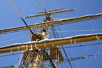 - Verga de gavia: es la que sostiene la gavia y se iza en el mastelero mayor.