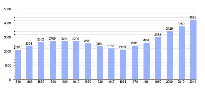 Todos los datos históricos relativos al actual municipio, el siguiente gráfico refleja su evolución demográfica, incluyendo municipios después de efectuada la fusión el 1 de enero de 1977.
