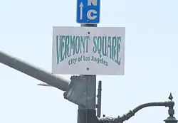 ![]() Rótulo del barrio de Vermont Square en la Avenida Vermont y el Bulevar Martin Luther King