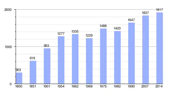 | Gráfica de evolución demográfica de Verquigneul entre 1800 y 2014 |
