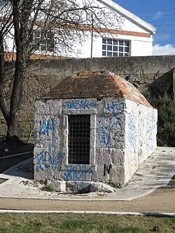 Restos del arca y fuente de la actual calle Estación. Este caño era la continuación de las tuberías bajo el ferrocarril que venían desde las Arcas Reales. Ya no existe. Fue destruida en marzo de 2022 a causa de las obras del nuevo túnel -