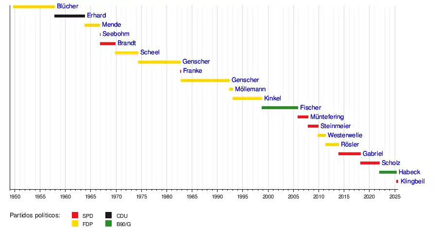 Franz Blücher | 20 de septiembre de 1949 | 20 de octubre de 1953 | 4 años, 1 mes y 9 días |