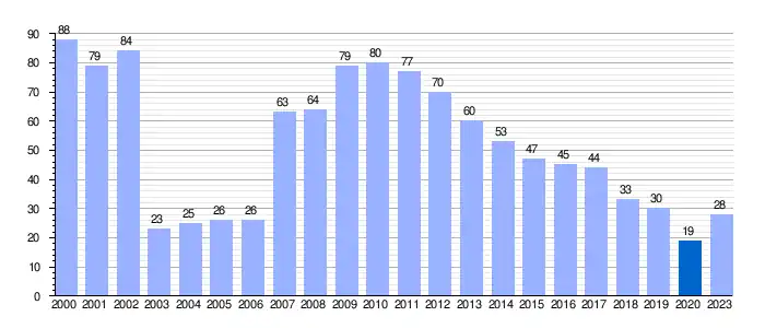 | Gráfica de evolución demográfica de Vicolozano entre 2000 y 2023 |