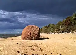 - La playa de Vidzeme - playa arenosa prístina con acantilados de arenisca, cascadas, cantos rodados;