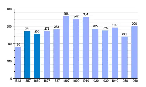 | Gráfica de evolución demográfica de Vilallobent[3] entre 1842 y 1960 |