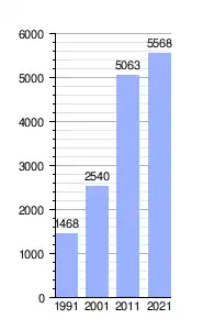 | Gráfica de evolución demográfica de Vilanova del Vallés[4] entre 1991 y 2021 |