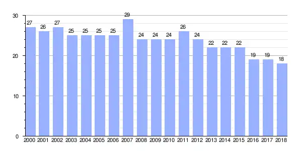 | Gráfica de evolución demográfica de Vilariño entre 2000 y 2018 |