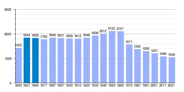| Gráfica de evolución demográfica de Villabrágima[10] entre 1842 y 2021 |