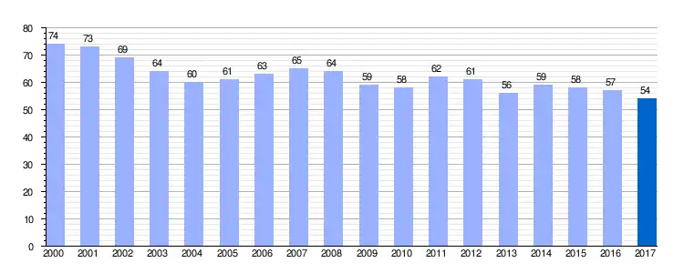 | Gráfica de evolución demográfica de Villacintor entre 2000 y 2017 |