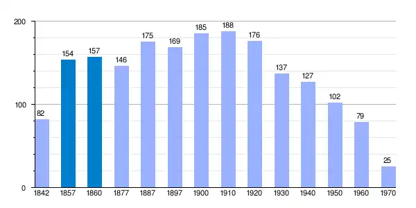 | Gráfica de evolución demográfica de Villaesper[2] entre 1842 y 1970 |