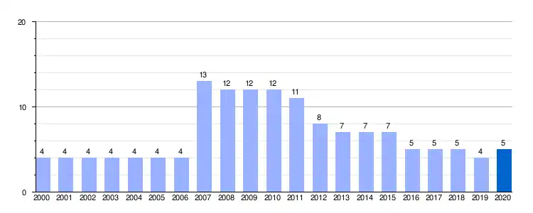 | Gráfica de evolución demográfica de Villafruela entre 2000 y 2020 |