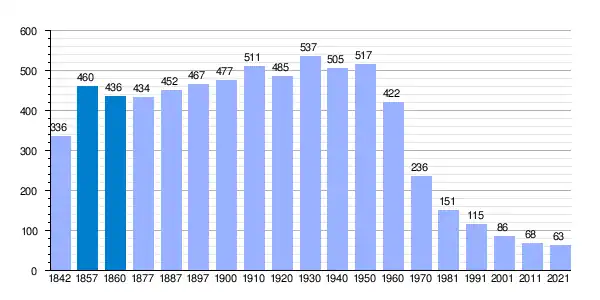 | Gráfica de evolución demográfica de Villagómez la Nueva[3] entre 1842 y 2021 |
