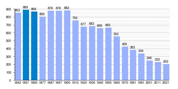 | Gráfica de evolución demográfica de Villaherreros[1] entre 1842 y 2021 |