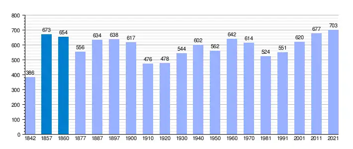 | Gráfica de evolución demográfica de Villalba de Duero[4] entre 1842 y 2021 |