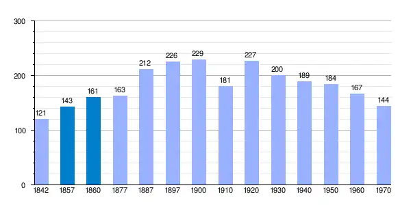 | Gráfica de evolución demográfica de Villalba de los Morales[2] entre 1842 y 1970 |
