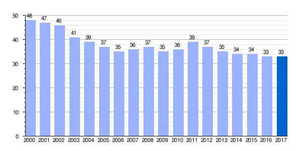 | Gráfica de evolución demográfica de Villamaderne-Bellojín[1] entre 2000 y 2017 |