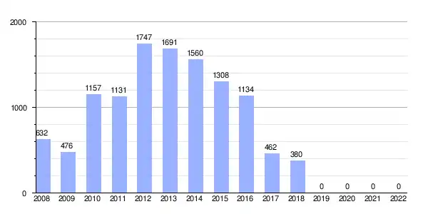 | Gráfica de evolución de la deuda viva del Ayuntamiento de Villamanrique de la Condesa entre 2008 y 2022 |