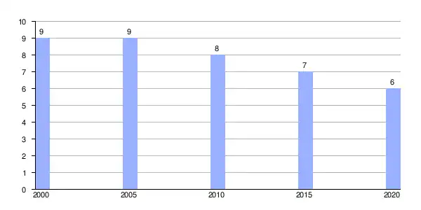 | Gráfica de evolución demográfica de Villamarín (aldea) entre 2000 y 2020 |