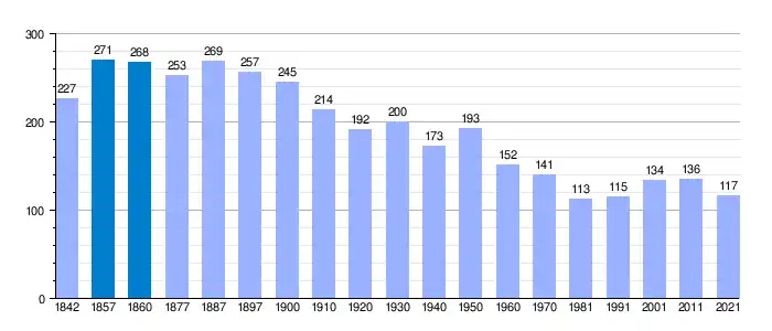 | Gráfica de evolución demográfica de Villamayor de Monjardín[4] entre 1842 y 2021 |