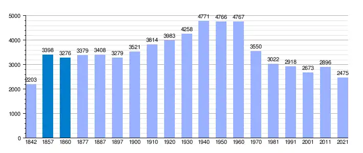 | Gráfica de evolución demográfica de Villamayor de Santiago[2] entre 1842 y 2021 |