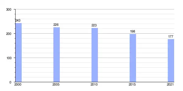| Gráfica de evolución demográfica de Villamayor de la Boullosa (parroquia) entre 2000 y 2021 |