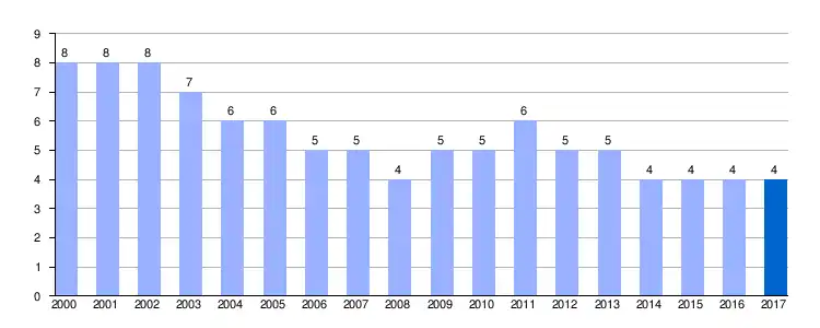 | Gráfica de evolución demográfica de Villamediana de San Román entre 2000 y 2017 |