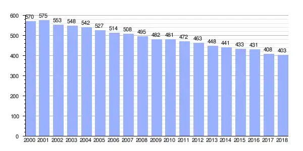 | Gráfica de evolución demográfica de Villanova[3] entre 2000 y 2018 |