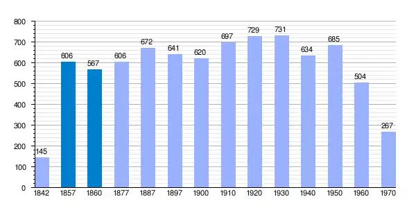 | Gráfica de evolución demográfica de Villanueva de Henares[6] entre 1842 y 1970 |