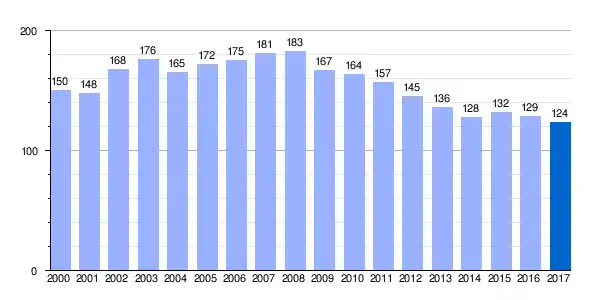 | Gráfica de evolución demográfica de Villanueva de Valdegovía[3] entre 2000 y 2017 |