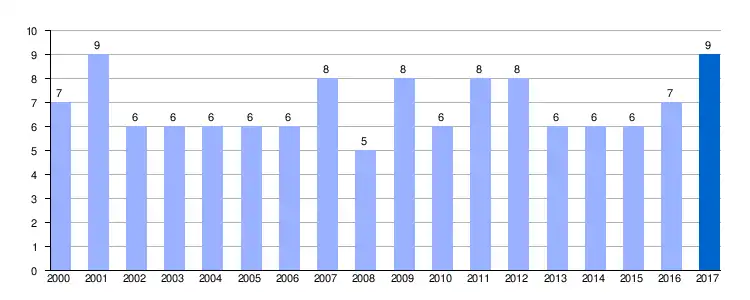 | Gráfica de evolución demográfica de Villanueva de la Oca entre 2000 y 2017 |