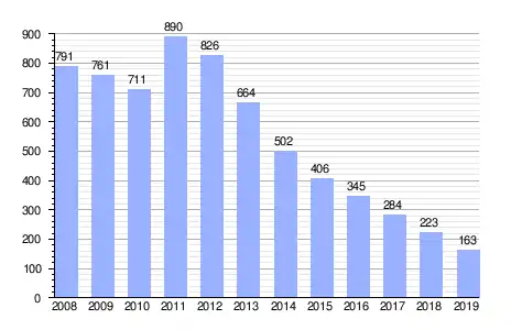 Deuda viva del Ayuntamiento de Vva. de la Reina en miles de euros según datos del Ministerio de Hacienda y Ad. Públicas.[6] |