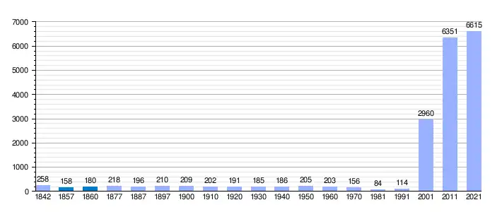 | Gráfica de evolución demográfica de Villanueva de la Torre[7] entre 1842 y 2021 |