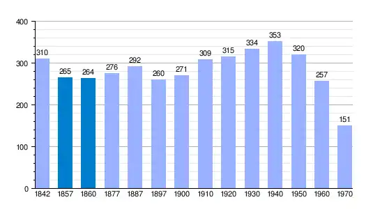 | Gráfica de evolución demográfica de Villar del Saz de Navalón[2] entre 1842 y 1970 |