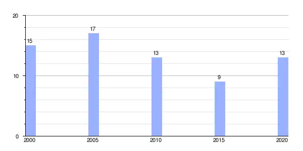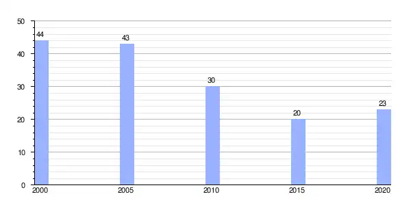 | Gráfica de evolución demográfica de Villarmiel (parroquia) entre 2000 y 2020 |