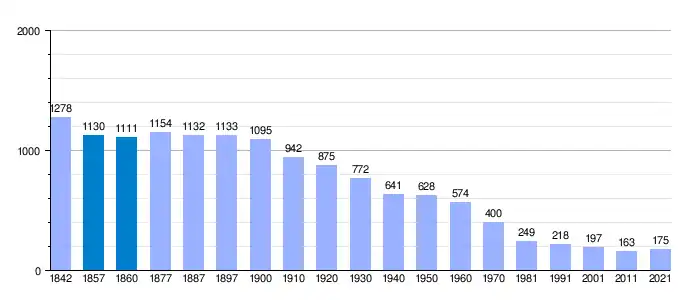 | Gráfica de evolución demográfica de Villarroya de los Pinares[4] entre 1842 y 2021 |
