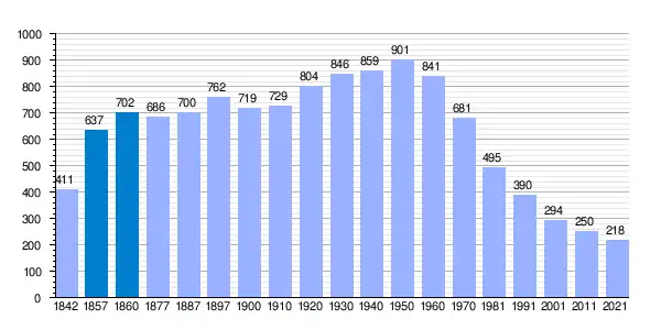| Gráfica de evolución demográfica de Villaseco del Pan[11] entre 1842 y 2021 |