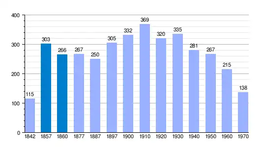 | Gráfica de evolución demográfica de Villaverde Peñahorada[3] entre 1842 y 1970 |