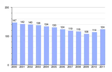 Población (2000-2011) según el nomenclátor de unidades poblacionales del INE.[3] |