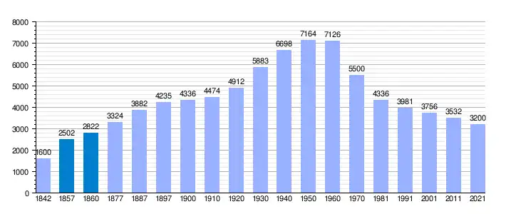 | Gráfica de evolución demográfica de Villaviciosa de Córdoba[2] entre 1842 y 2021 |