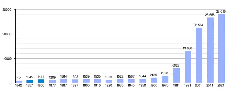 | Gráfica de evolución demográfica de Villaviciosa de Odón[8] entre 1842 y 2021 |