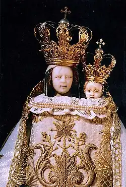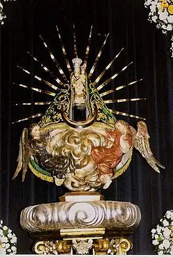 Esta ermita, famosa en la antigüedad por los milagros que se habían llevado a cabo en ella, poseía una hornacina sobre la puerta, en la que estaba colocada esta pequeña imagen de la Virgen.