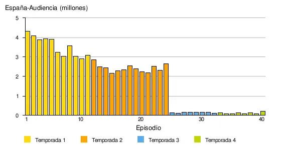 | Temporada | Cadena | Episodios | Emisión original | Audiencia media | |||