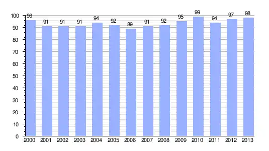 | Gráfica de evolución demográfica de Viscarret-Guerendiáin entre 2000 y 2013 |