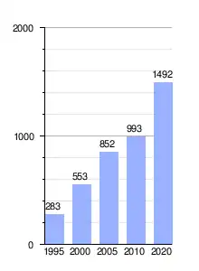 | Gráfica de evolución demográfica de Viveros de la Loma entre 1995 y 2020 |