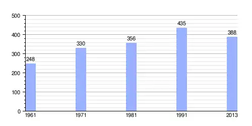 | Gráfica de evolución demográfica de Vlaškovo entre 1961 y 2013 |