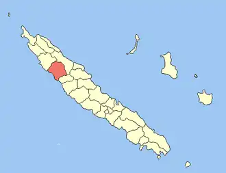 Localización de la comuna (en rojo) dentro de Nueva Caledonia. | ||