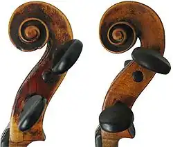 Su forma sigue siendo común en la construcción de instrumentos de cuerda, que corresponde, normalmente, a la terminación del mástil o decoración del clavijero, como en los violines, violas o contrabajos.